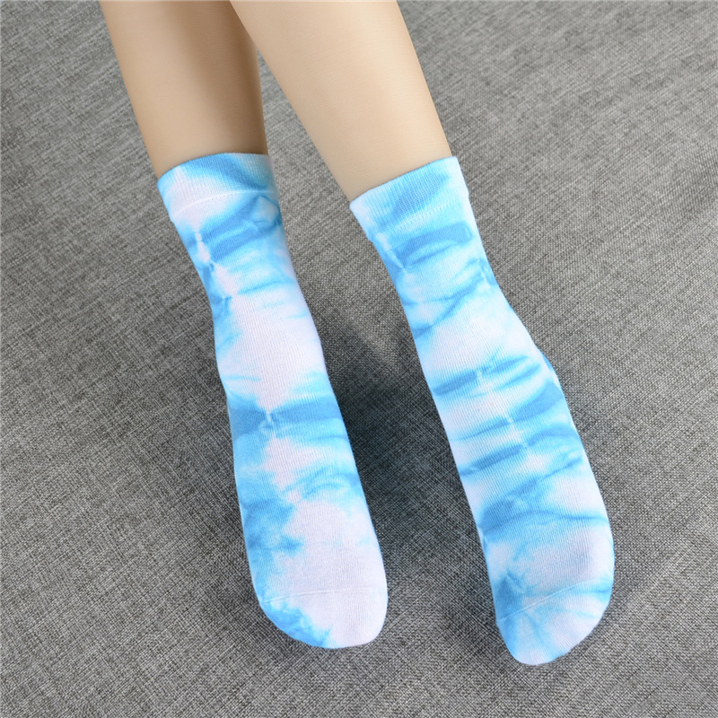 女扎染中筒棉袜 运动时尚潮品街头风ins糖果色东十一郎袜子厂批发