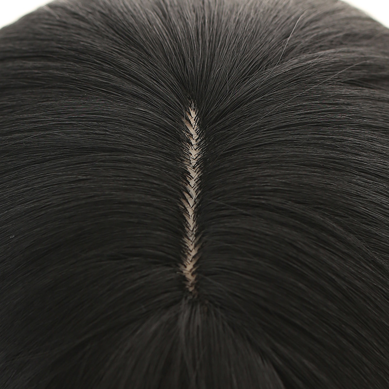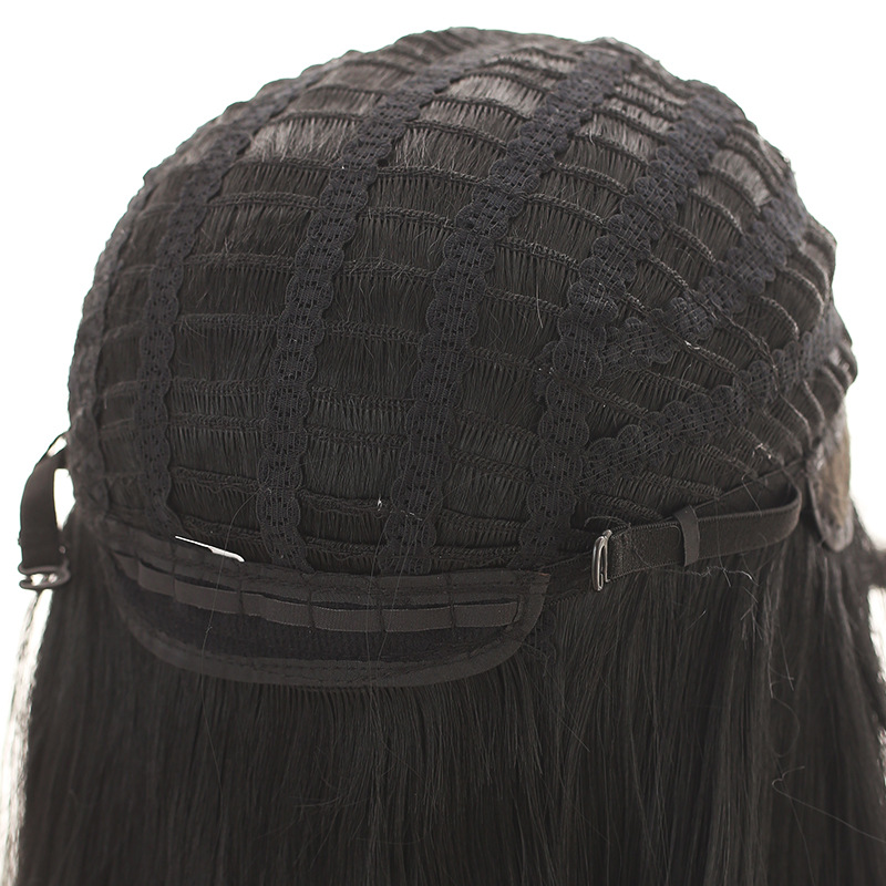 黑色万用45cm中分长头皮长直假发齐刘海自然黑高温丝哑光玫瑰网