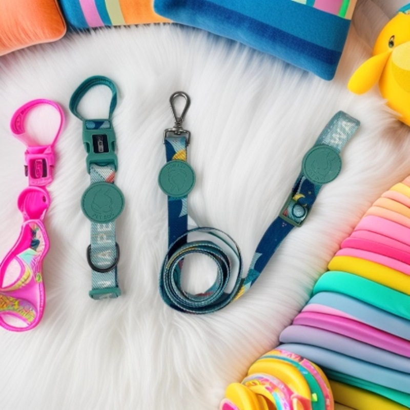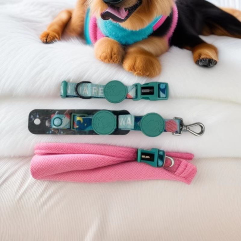 高端可调节橡胶LOGO时尚宠物项圈牵引绳套装