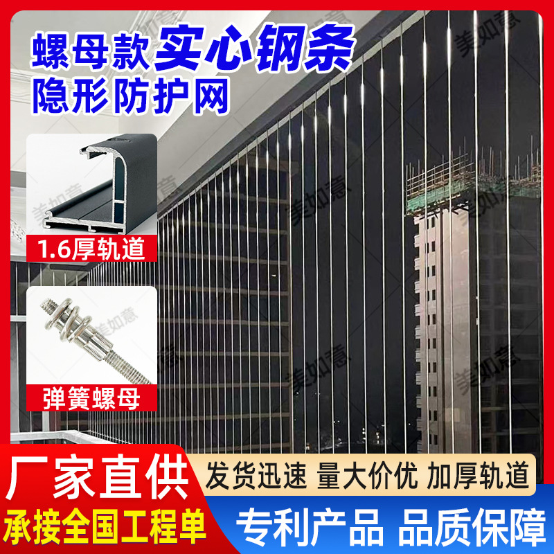 阳台专用高强抗拉螺母款实心钢隐形防护网全新铝合金轨道厂家直销