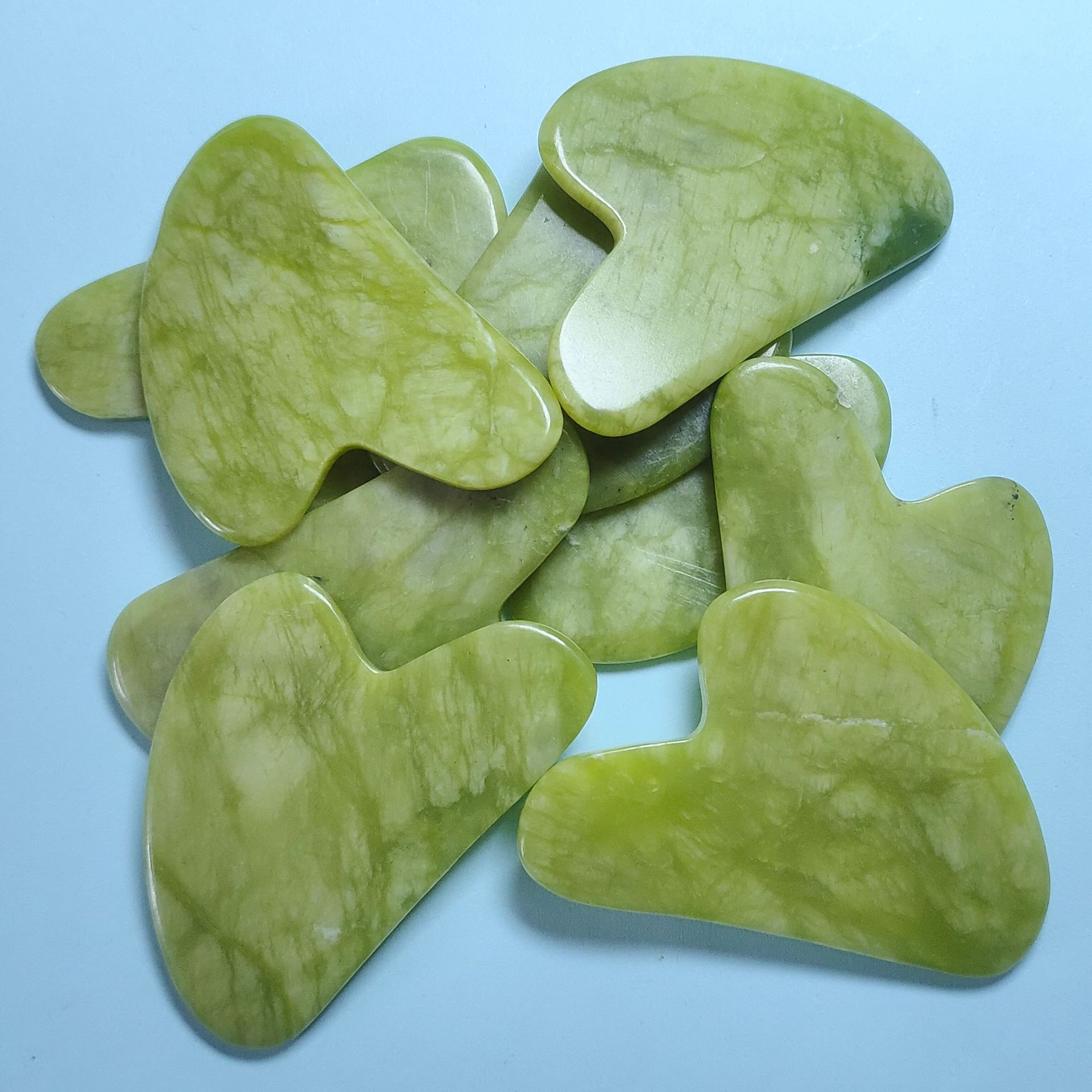 跨境绿凤玉天然玉石刮痧板 眼部面部美容脸部提拉浅绿心形刮痧板