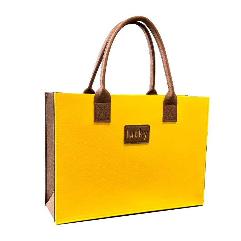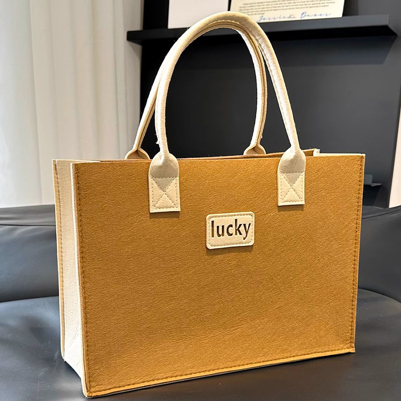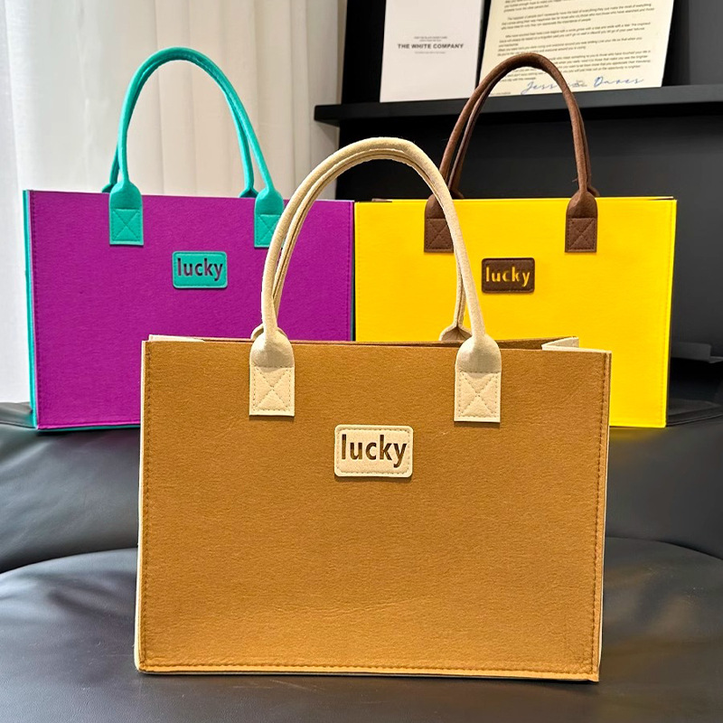 毛毡手提包大容量托特包拼接撞色手提购物袋时尚礼品袋便携毛毡包