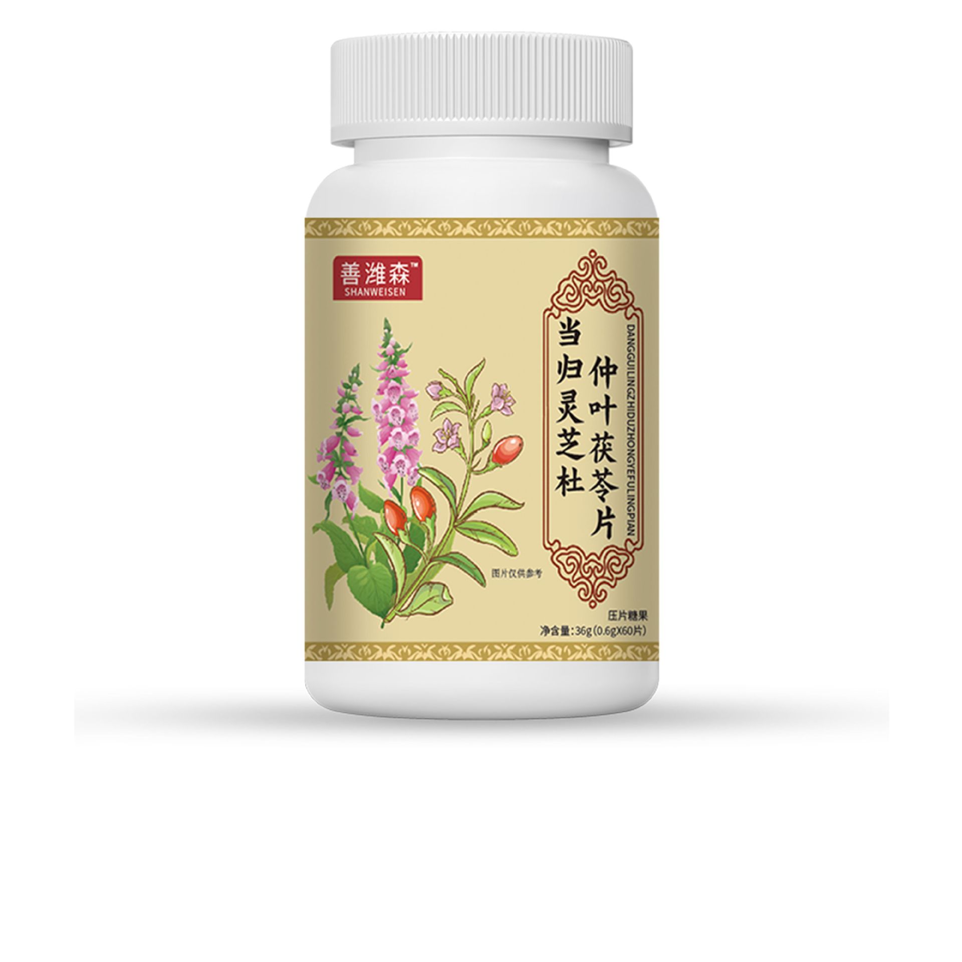 善潍森当归灵芝杜仲叶茯苓片36克0.6克*60片