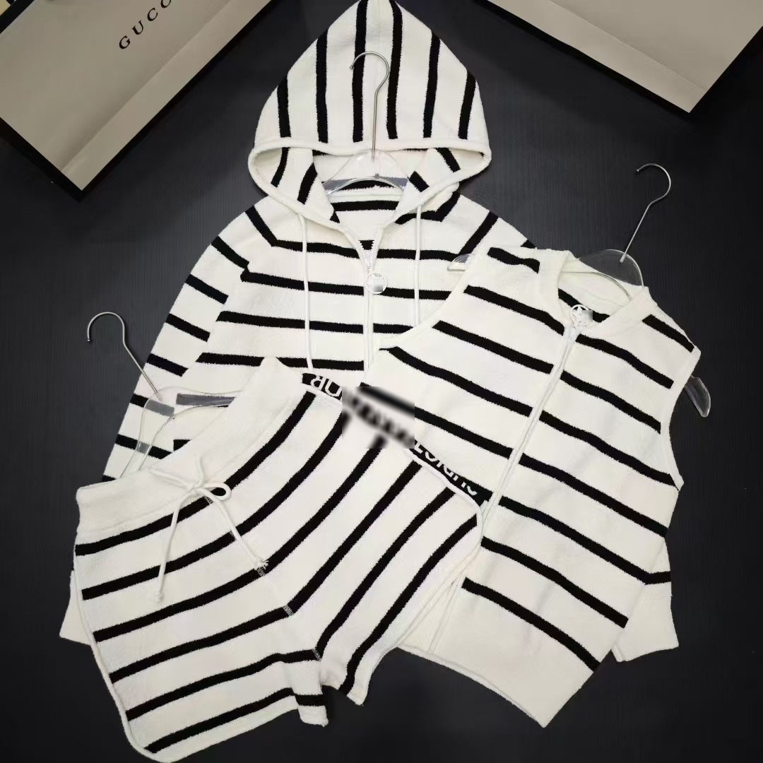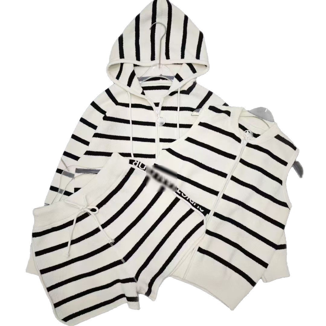 深圳南油高版CD家25年新款条纹字母针织开衫马甲上衣短裤连帽外套