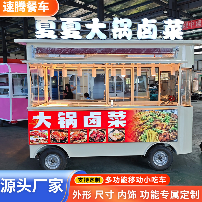 网红卤味熟食摆摊车电动四轮街景夜市炸串烧烤多功能商用移动餐车