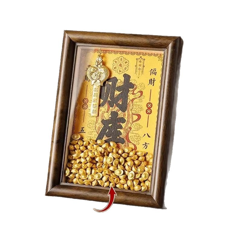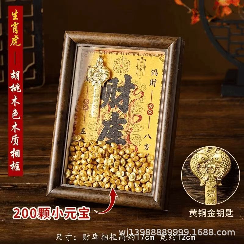 黄财神开金库财库相框办公室工位摆件十二生肖金钥匙正品招财物件