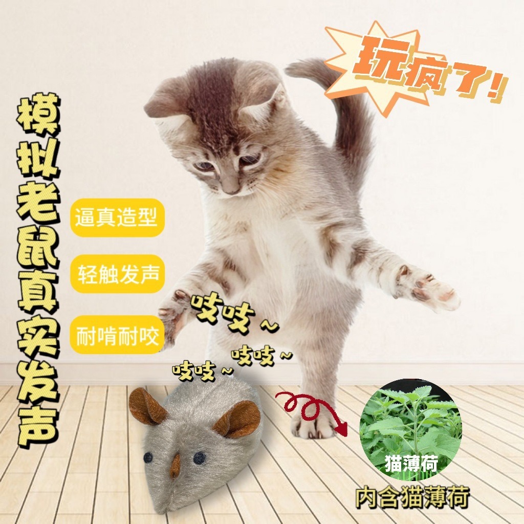 猫咪毛绒玩具电子发声叫叫鼠逗猫玩具耐啃咬互动逗猫
