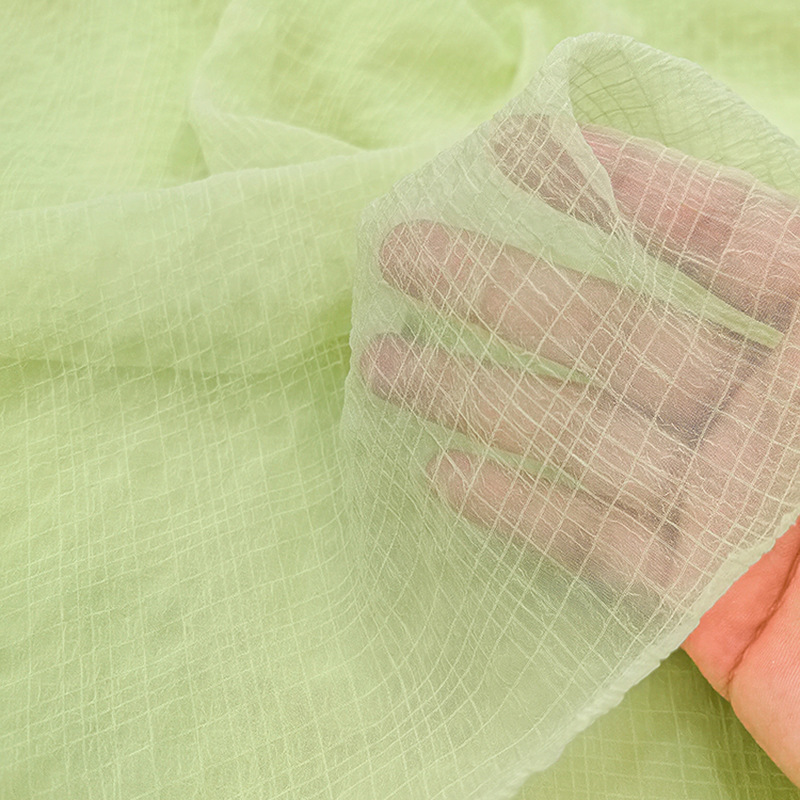 现货 格子欧根纱面料 褶皱肌理感女装汉服服饰裙子小清晰公主裙