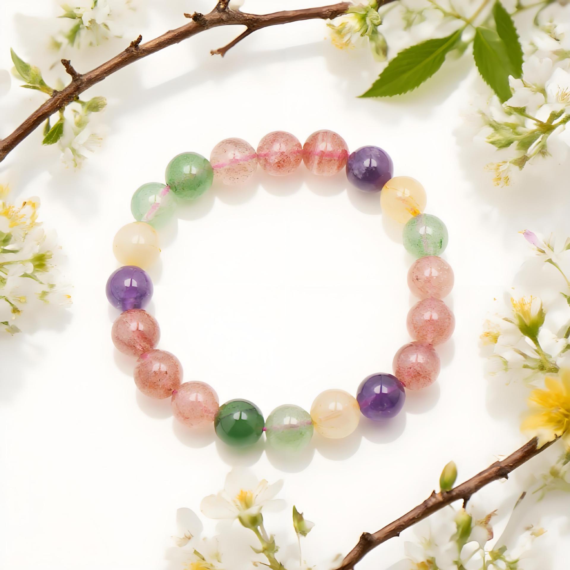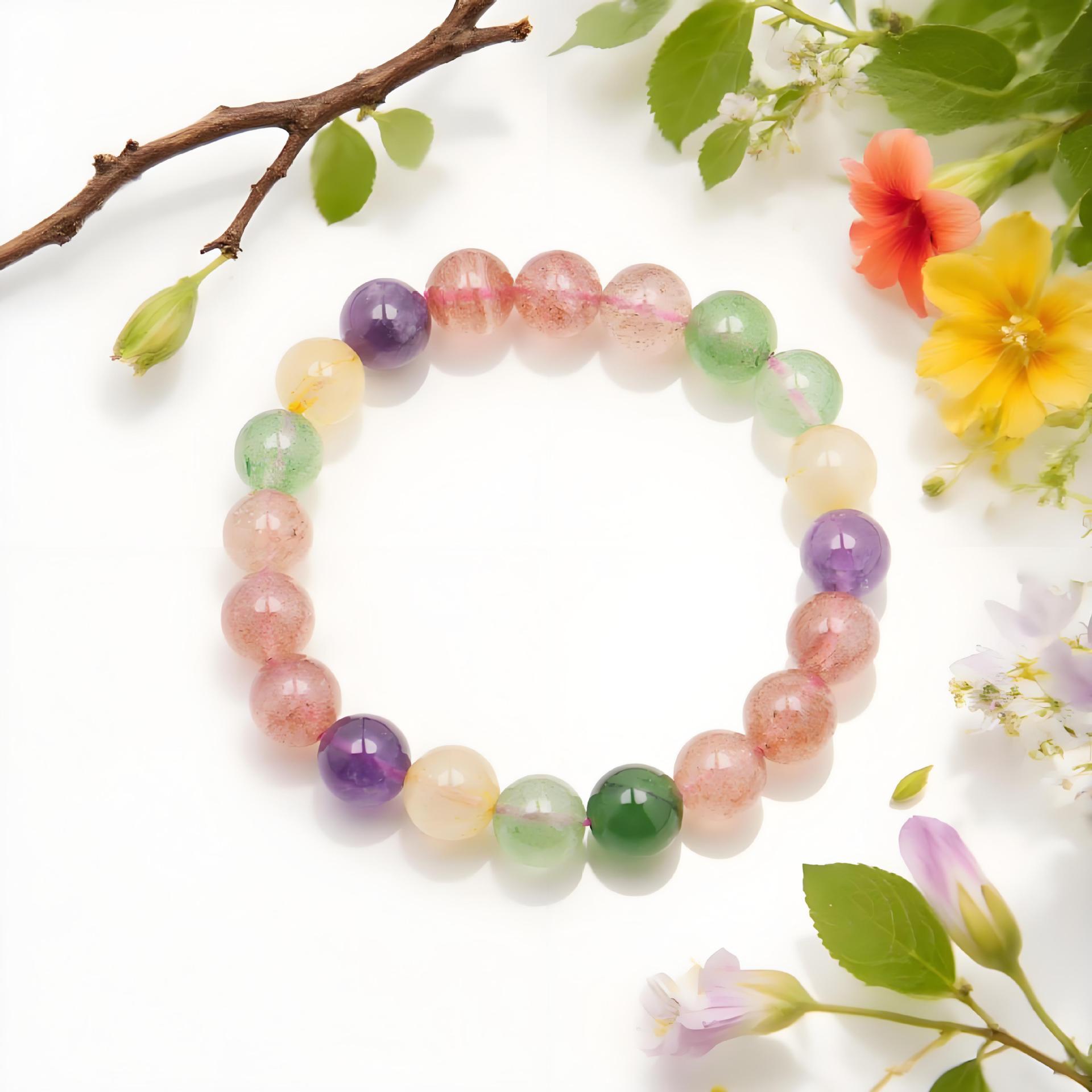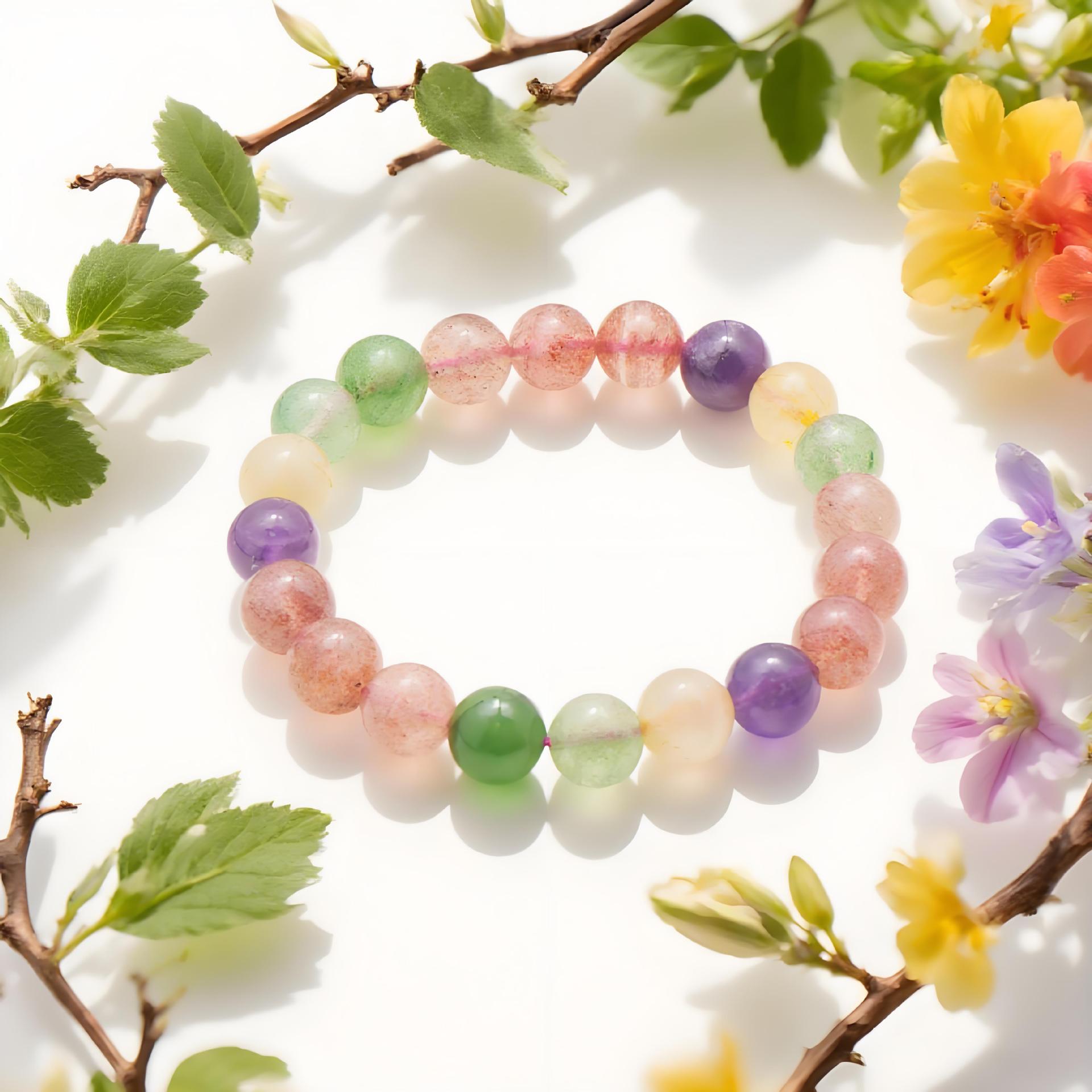 天然多彩草莓晶手串手链草莓晶新款圆珠diy水晶手串手链成品批发