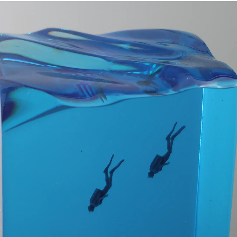 溶洞鲸鱼潜水员桌面摆件海洋艺术工艺品实木树脂灯生日礼物饰品