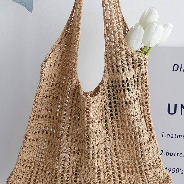包包工厂现货多巴胺配色编织针织包重工花纹包镂空百搭单肩包包女