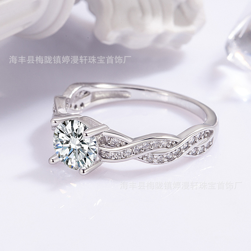 新品S925纯银锆石女戒指指环简约时尚款百搭婚礼送女友新娘首饰品