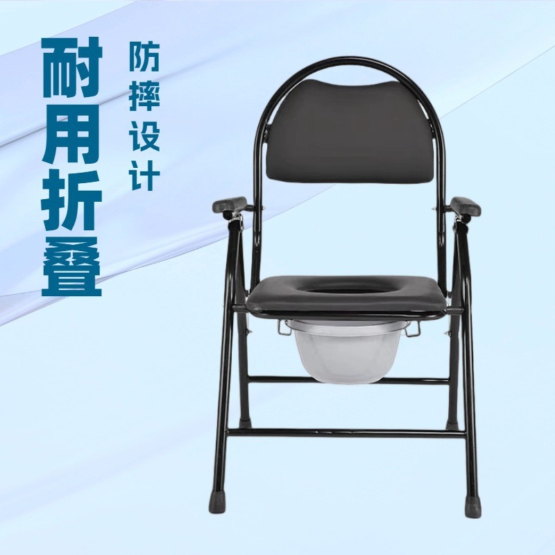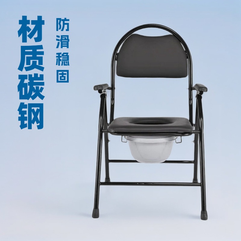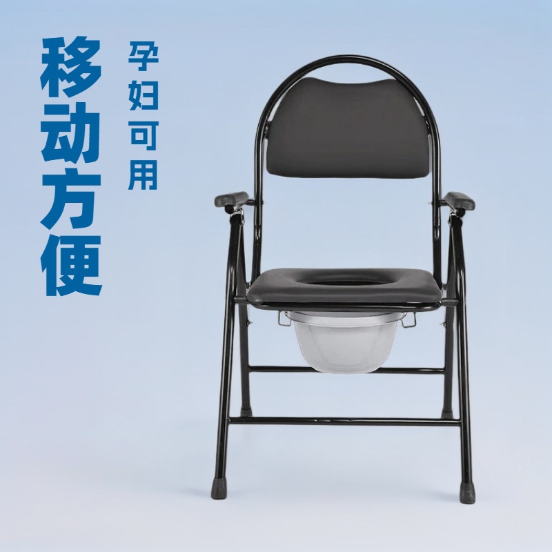 厂家批发老人孕妇室内可折叠坐便椅家用老年坐厕椅碳钢移动马桶凳