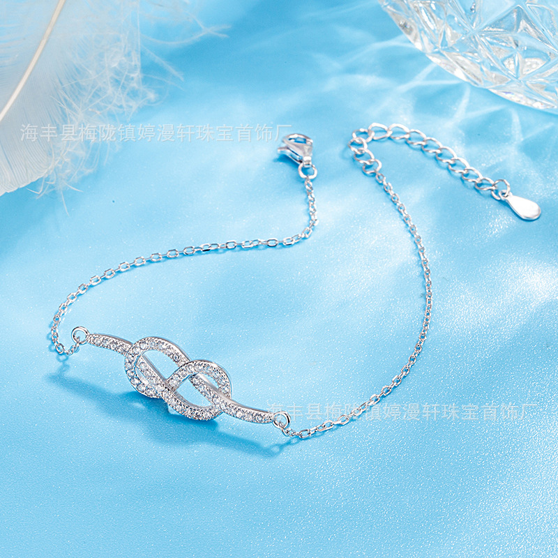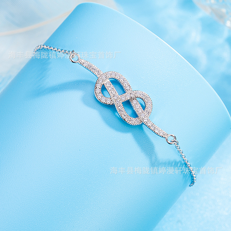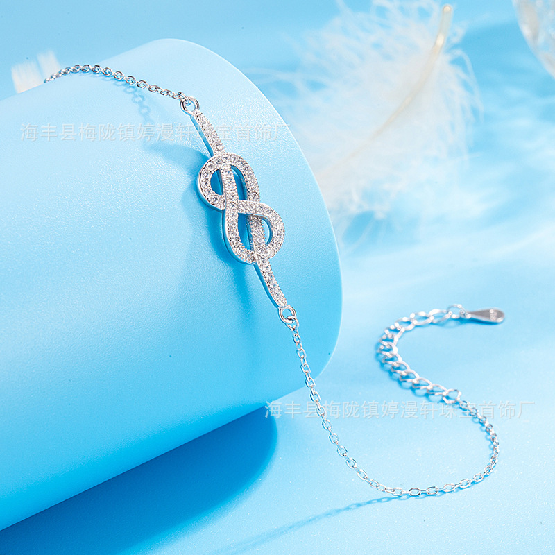新款S925纯银欧美跨境个性气质高级感镶钻交织8字手链小众礼物
