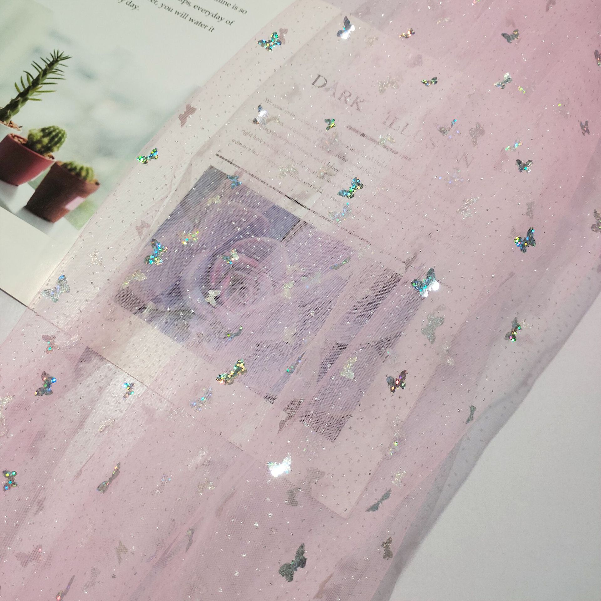 镭射冲片蝴蝶网眼布柔软微锦纶包装面料多彩亮片服装辅料冲片网纱