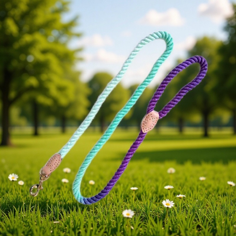 多功能渐变纯色手工编织宠物牵引绳纯色渐变铜钩狗狗手工编织牛皮