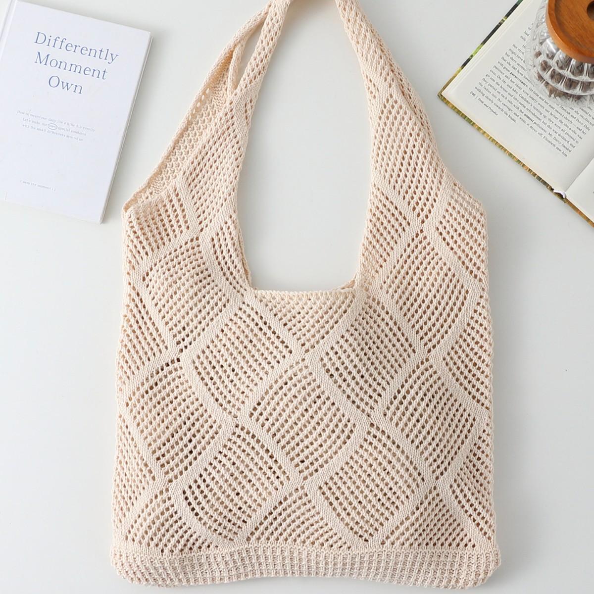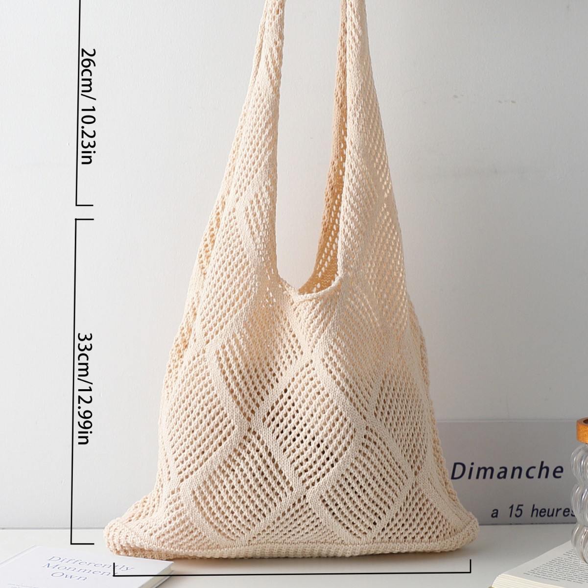 女式钩针包夏季沙滩手提包美学轻质耐用派对购物约会嬉皮袋针织包