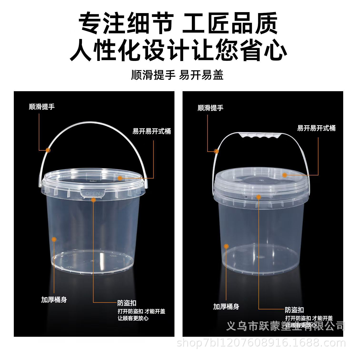 | 规格型号 | 5L易拉扣特厚;透明色;圆桶 | 规格型号 | 5L易拉扣特厚;白色;圆桶 |