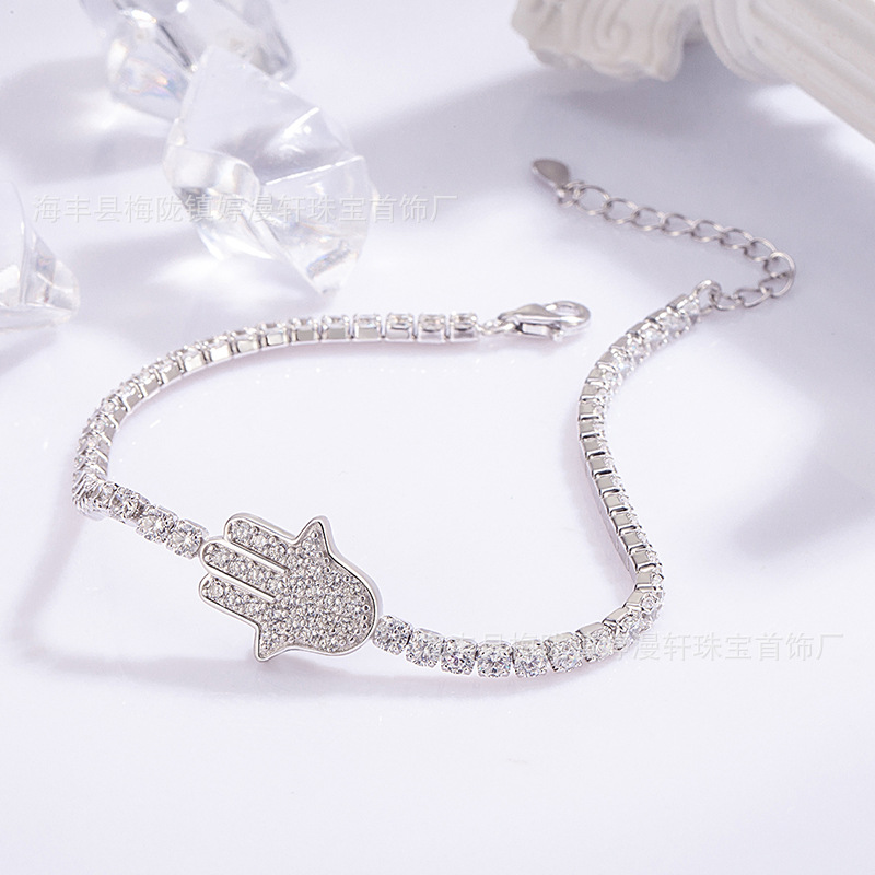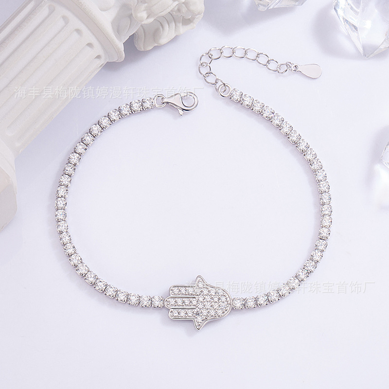 新品S925纯银手掌满钻超闪手链轻奢高级感微镶锆石时尚手饰厂家
