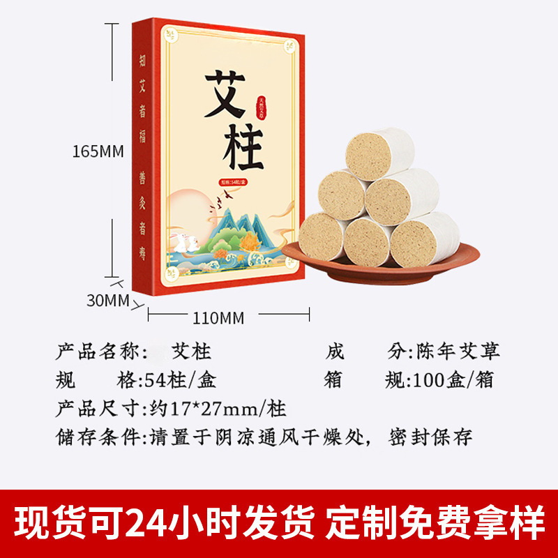 厂家现货艾柱家用熏灸艾草艾灸柱54粒盒装手工陈年艾艾条批发按摩