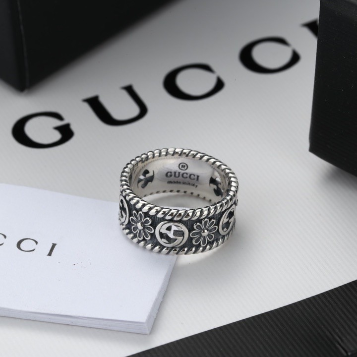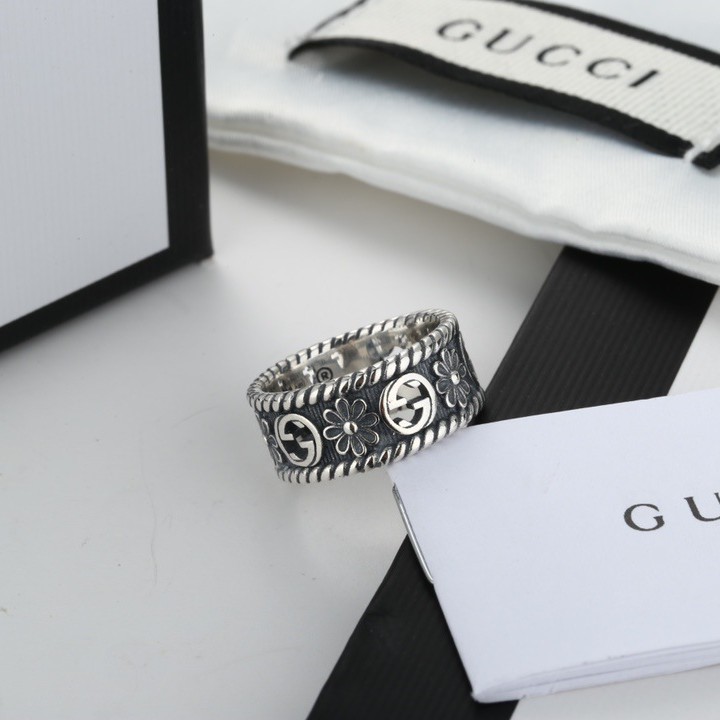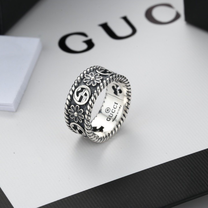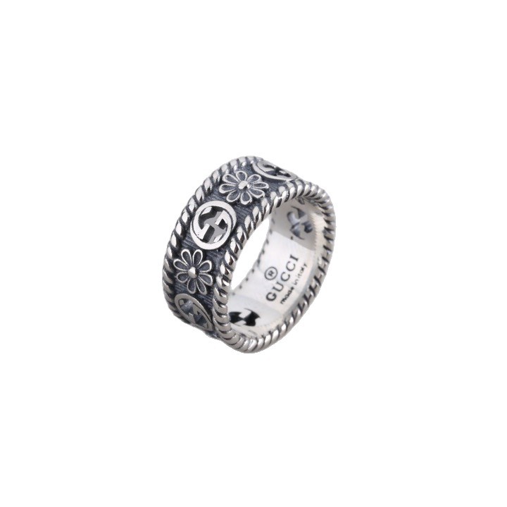 厂家直销925纯银戒指 古家 双G细花戒指 男女潮流复古做旧指环