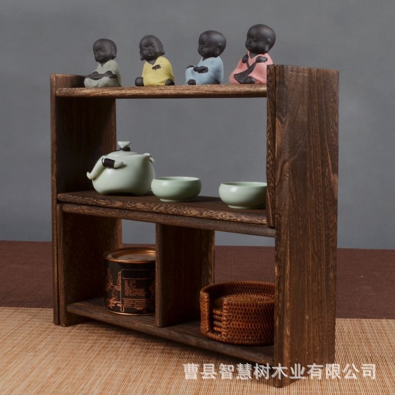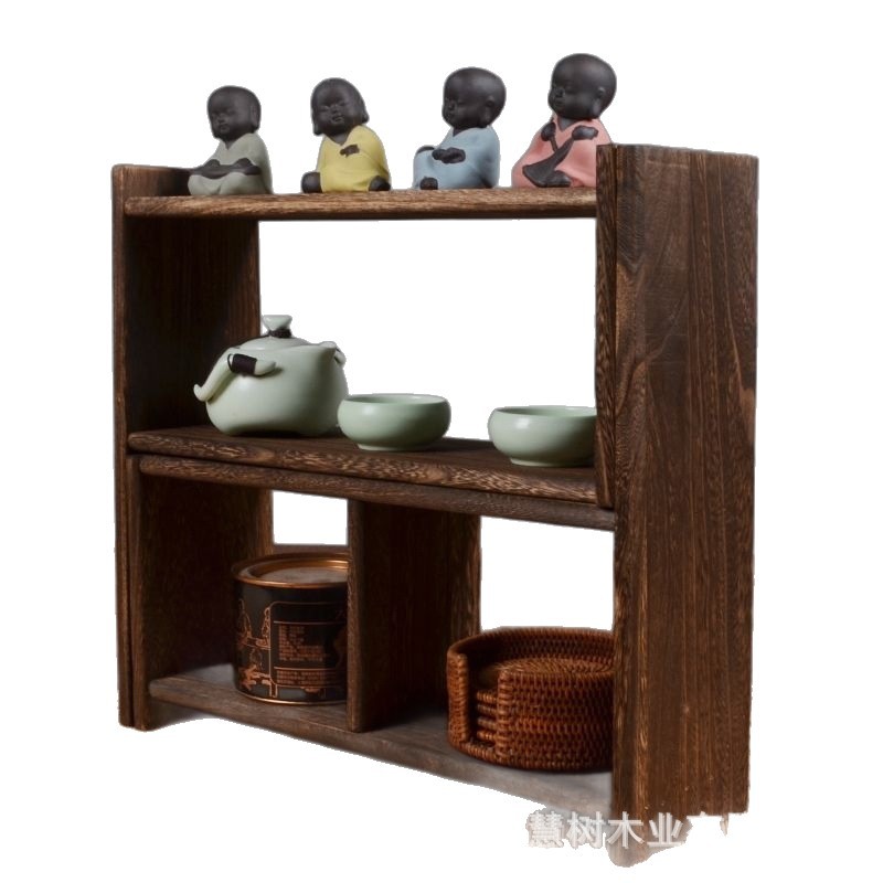 实木复古茶杯架茶具茶道收纳架博古架桌面客厅简约置物架书架中式