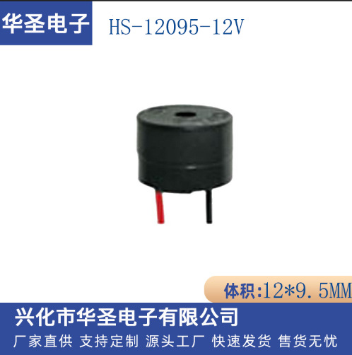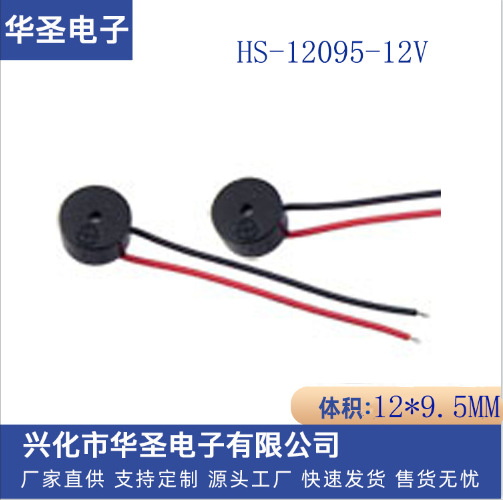 厂家批发12*9.5MM有源12V引线蜂鸣器HS-12095-12V电磁式蜂鸣器