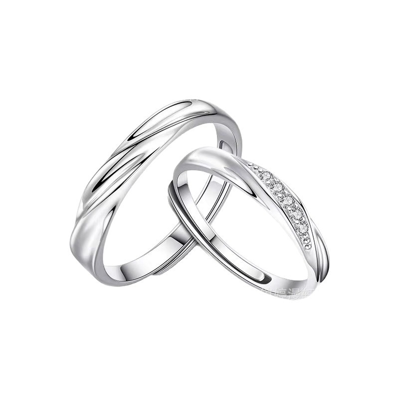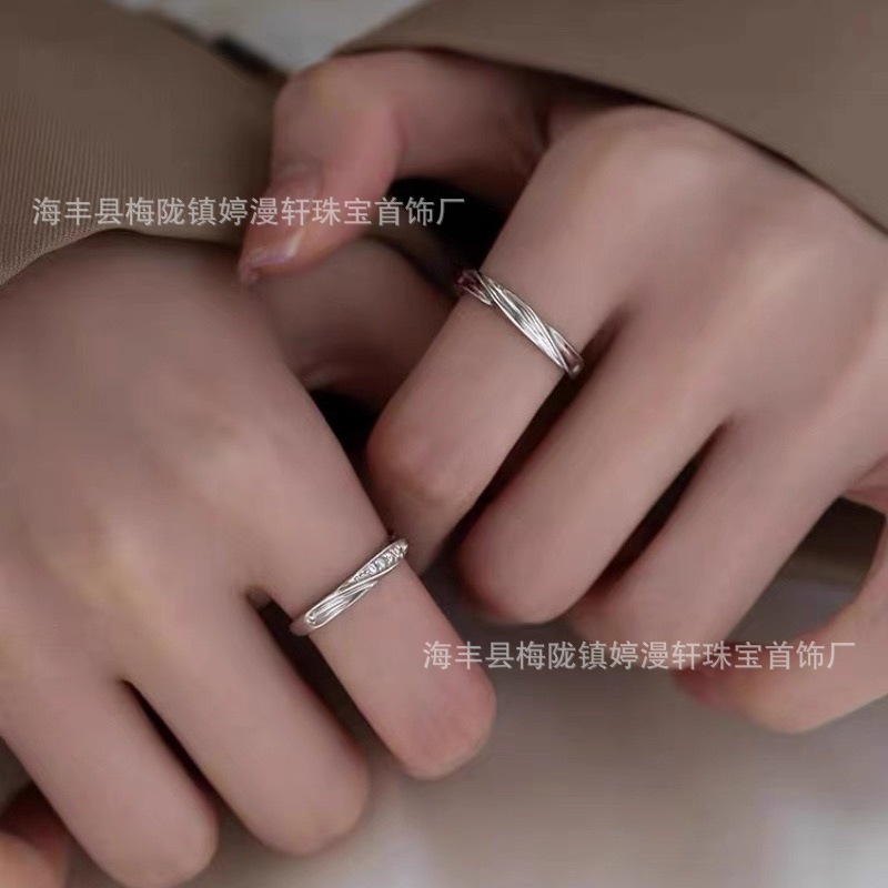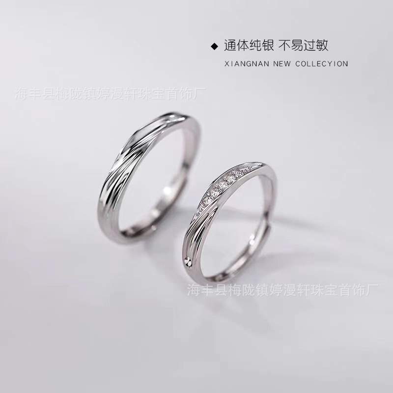 新品S925纯银抖音波光纹情侣戒指轻奢气质高级感ins风时尚对戒