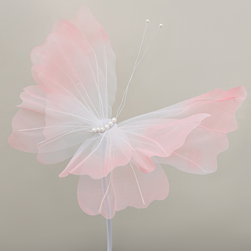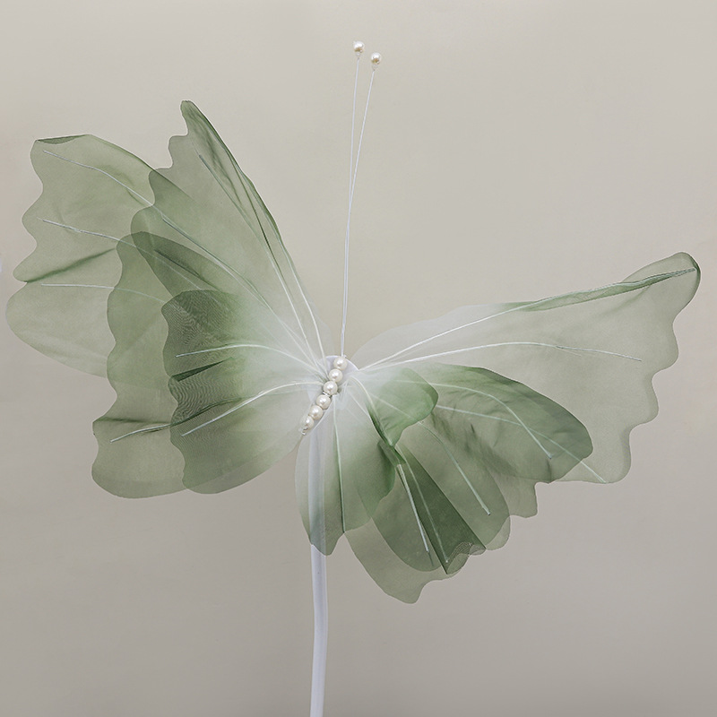 新款幻彩蝴蝶纱花 婚庆橱窗装饰花人造花 仿真手工艺彩色真丝蝴蝶