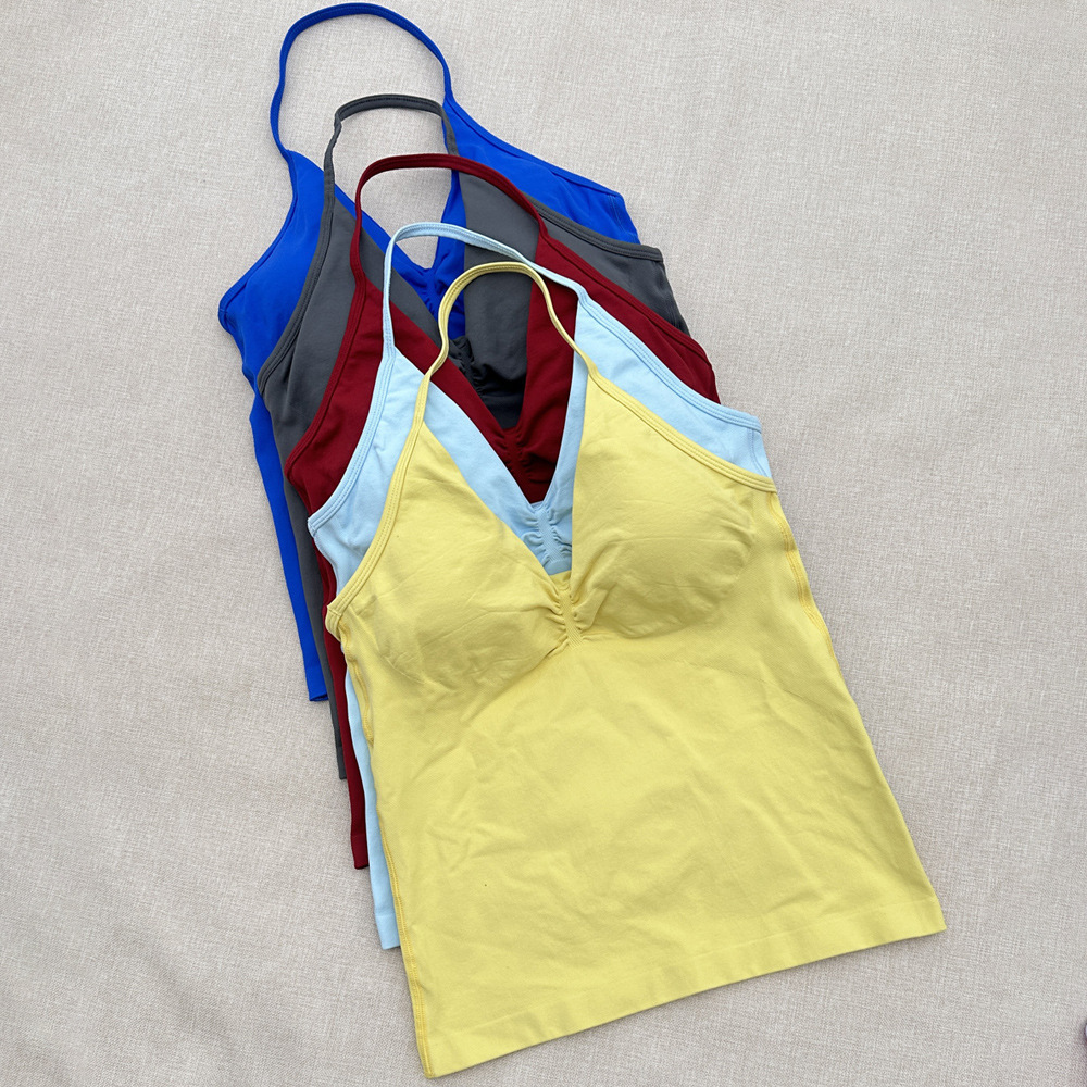 新款运动瑜伽背心 速干挂脖瑜伽上衣 带胸垫美背健身上衣女批发