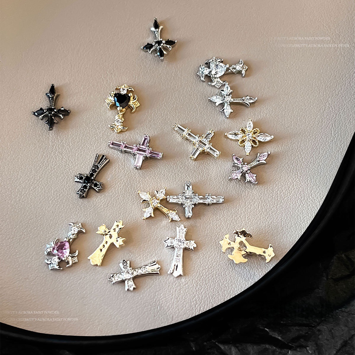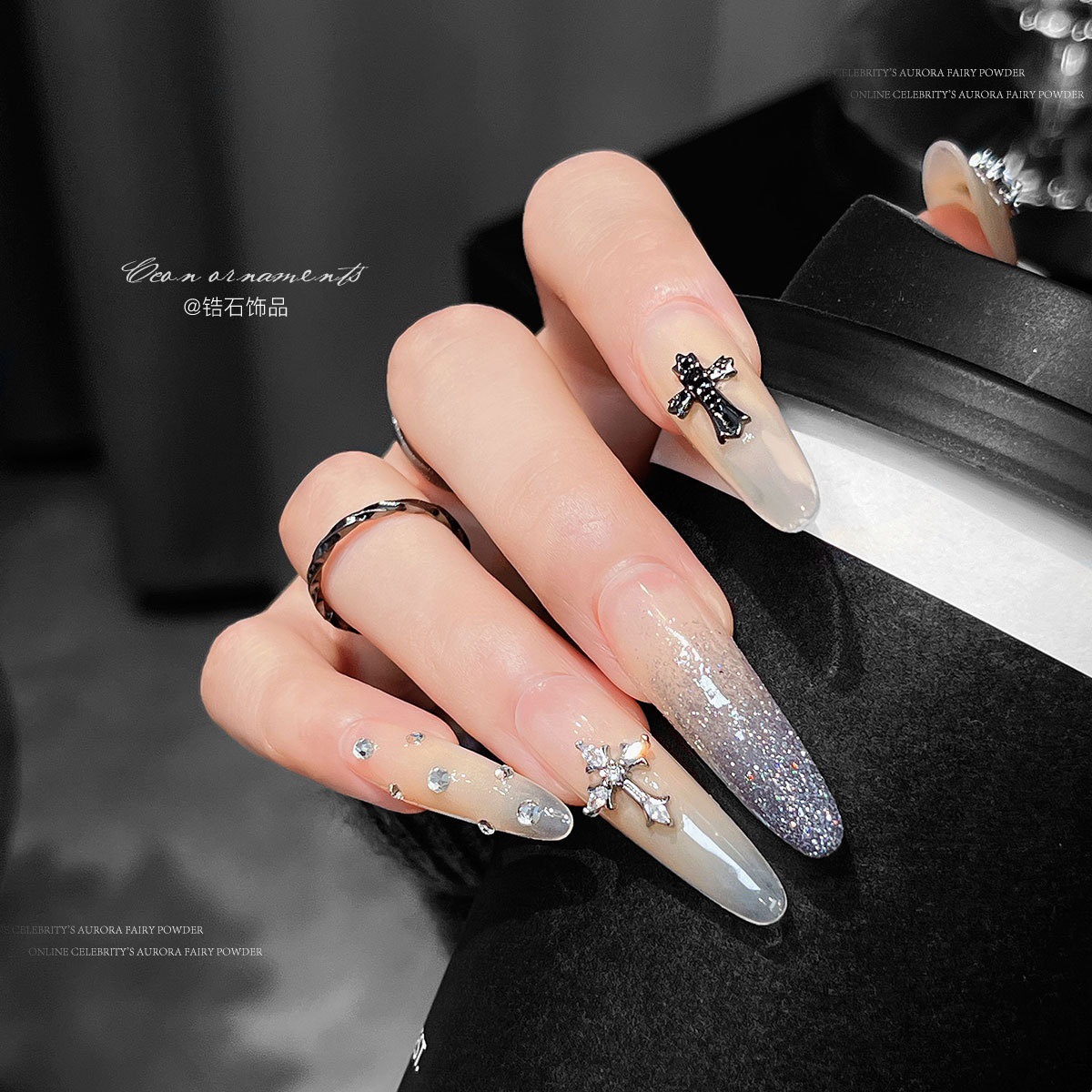 新款复古克罗心美甲饰高保色朋克风十字架银暗黑系金属指甲装饰品