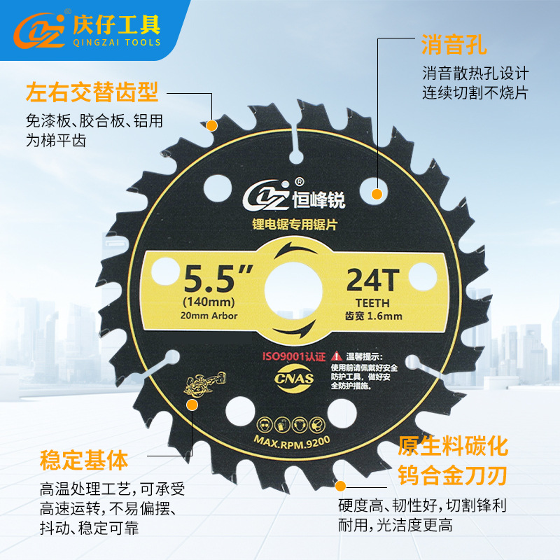 批发锂电锯片5.5寸 24齿圆锯片硬质合金木工燕尾齿超薄装修级家用