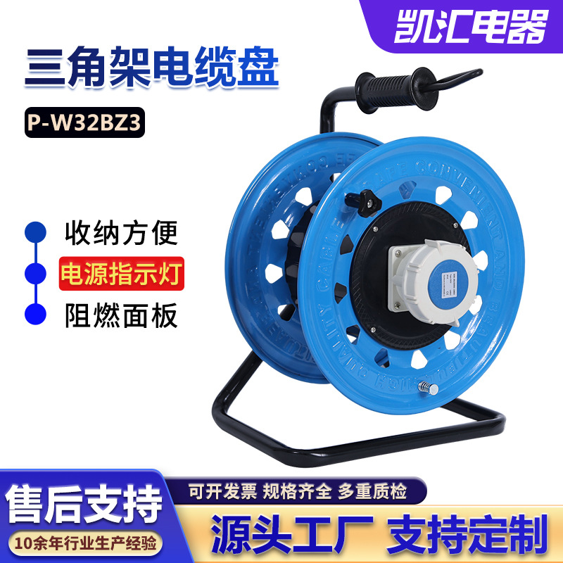 320工业插IP67级32A3芯(P-W32BZ3)三脚架电缆卷盘 移动电源盘
