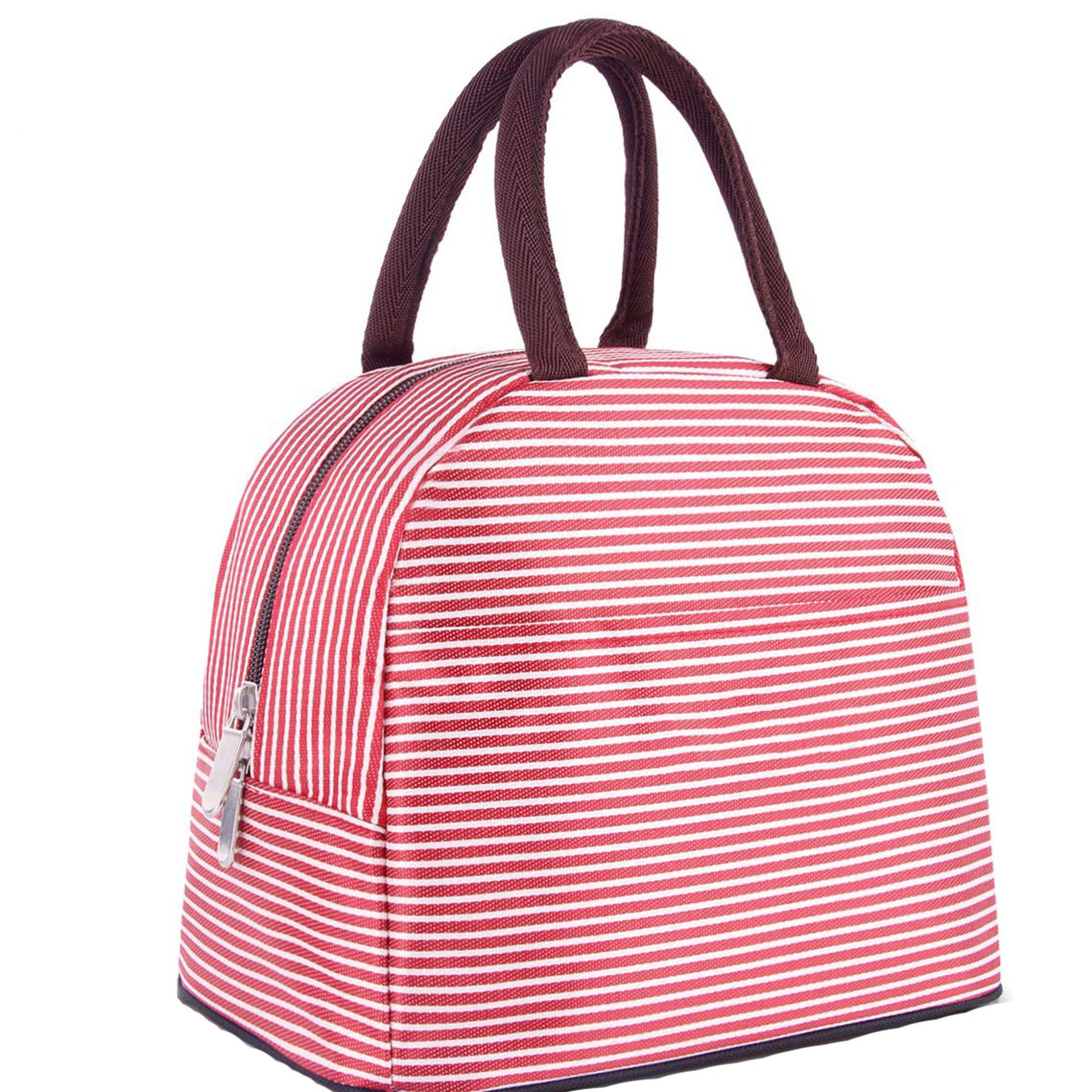 新款条纹手提牛津布野餐包 铝箔加厚超长保温保冷学生午餐包定制