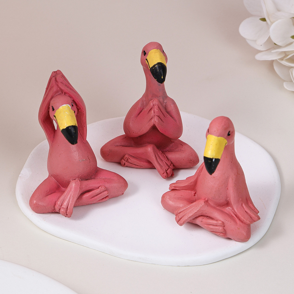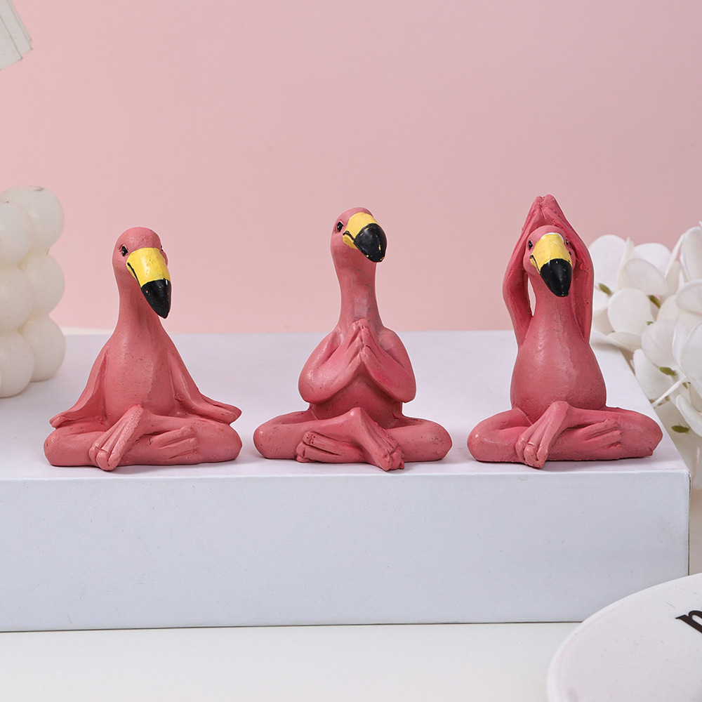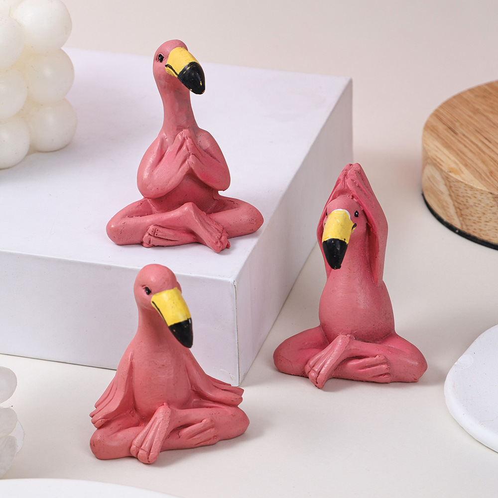 韩式创意火烈鸟迷你雕像瑜伽可爱摆件桌面花园装饰品树脂工艺品