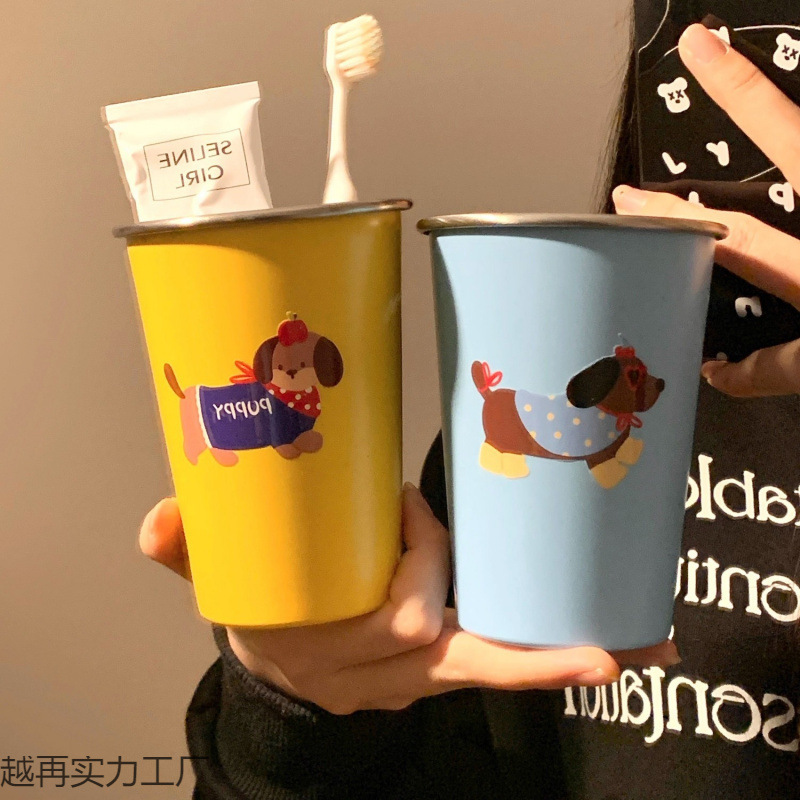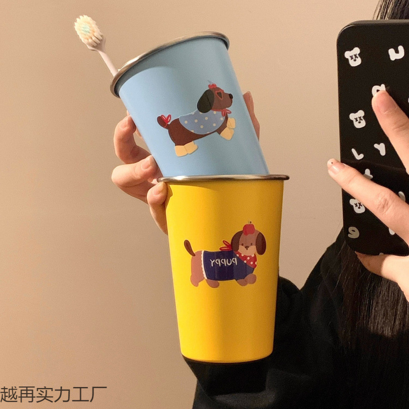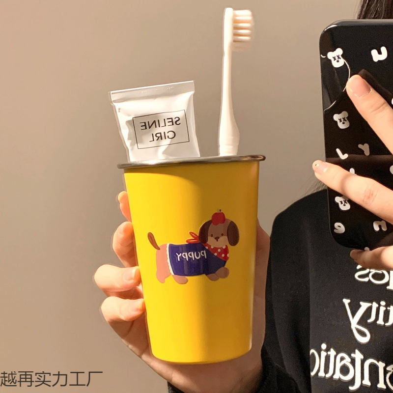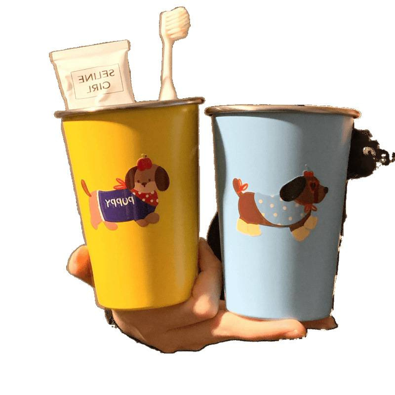 可爱腊肠狗漱口杯家用牙刷杯子洗漱杯情侣学生旅行不锈钢牙具牙杯