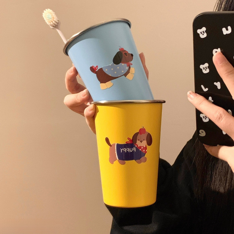 可爱腊肠狗漱口杯家用牙刷杯子洗漱杯情侣学生旅行不锈钢牙具牙杯