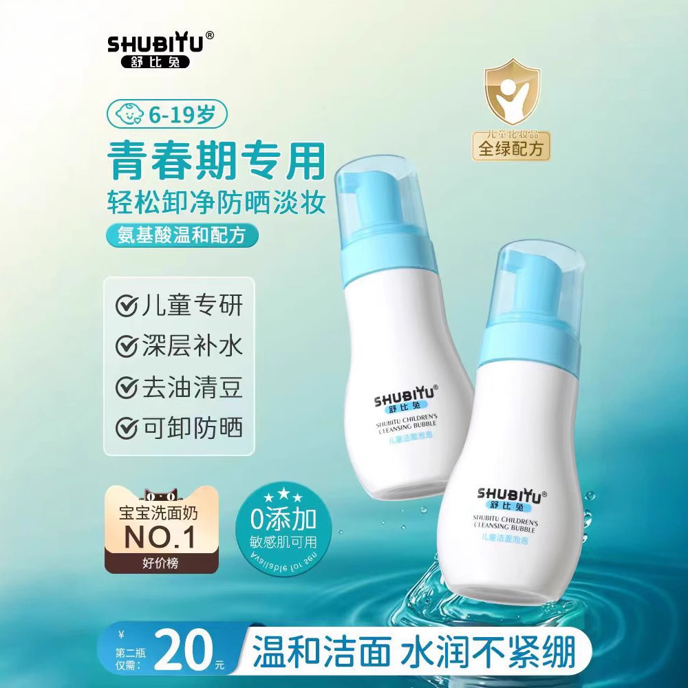 舒比兔儿童洗面奶女孩青少年青春期儿童洁面乳氨基酸泡泡洁颜面霜