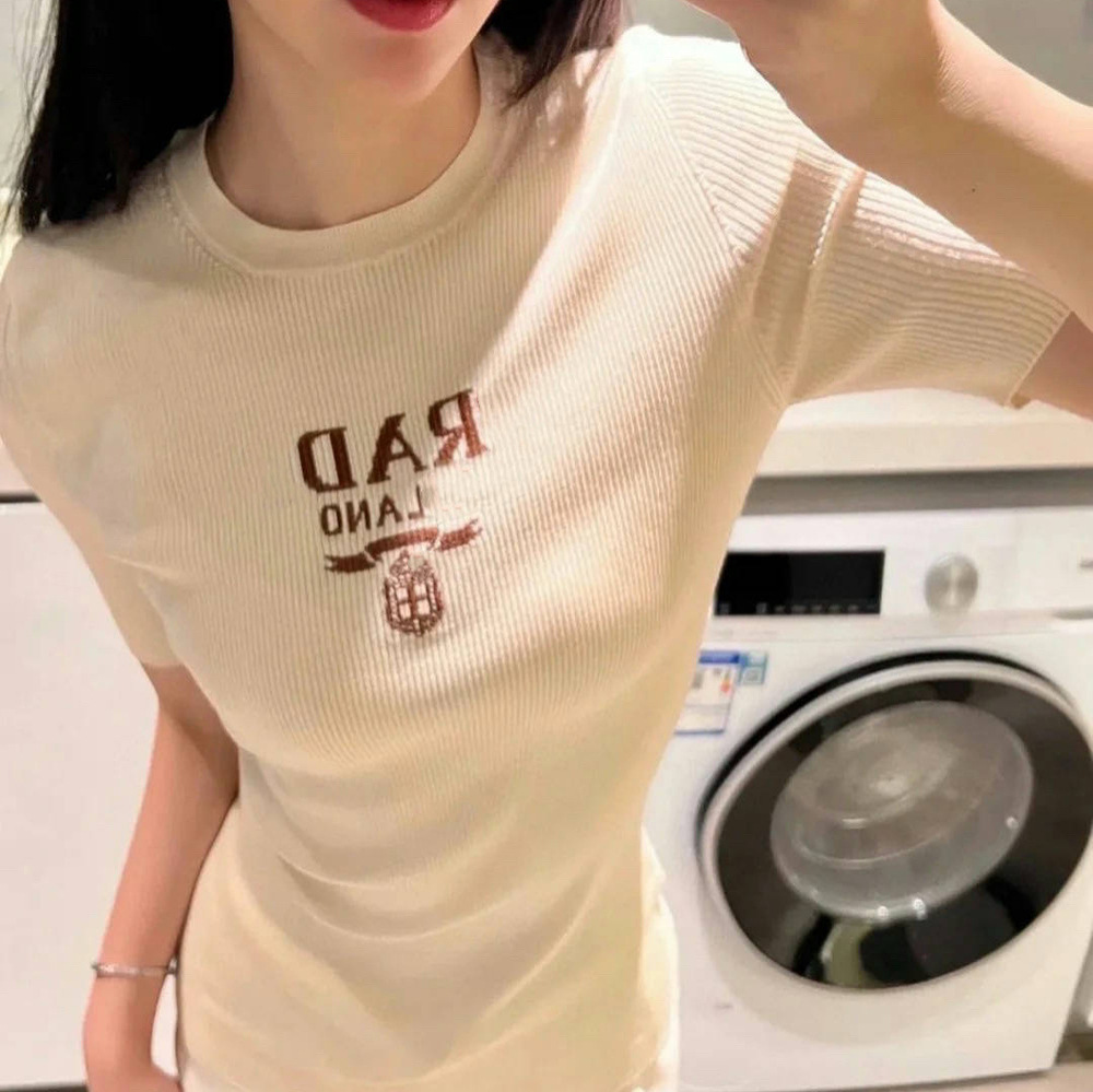 高端南油PA欧货女装小香风英文字母提花显瘦针织衫短袖上衣