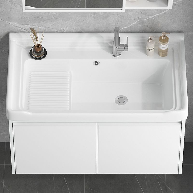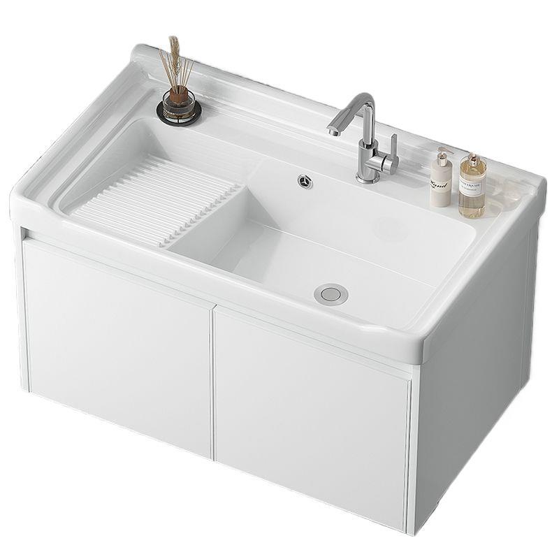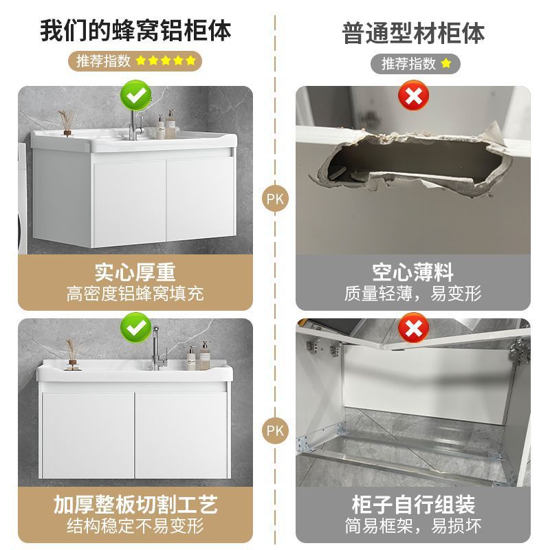 新款阳台卫生间洗衣盆陶瓷搓衣板水槽铝蜂窝挂壁浴室柜吊柜洗漱台