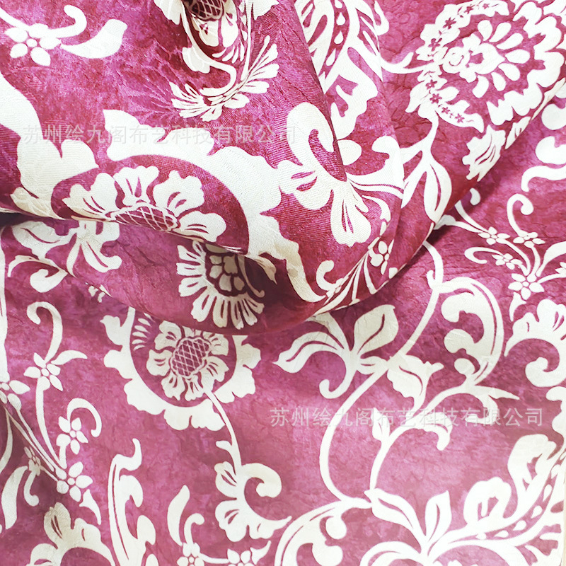 人丝人棉面料提花布新款沙发面料绒布欧式大花婚庆软包背景布批发