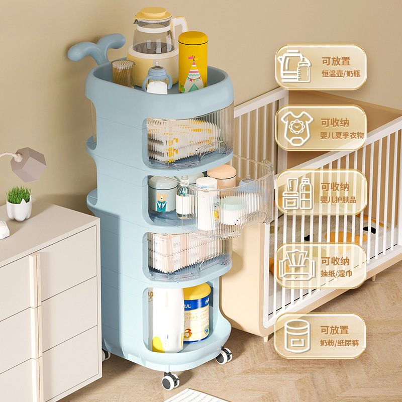 | 颜色 | 套餐【4层推车+奶瓶箱】晴空蓝 婴儿专用 | 颜色 | 4层【3抽+1架】樱草黄 婴儿专用 |