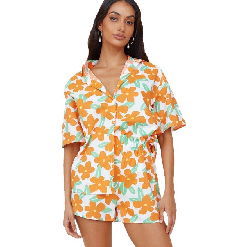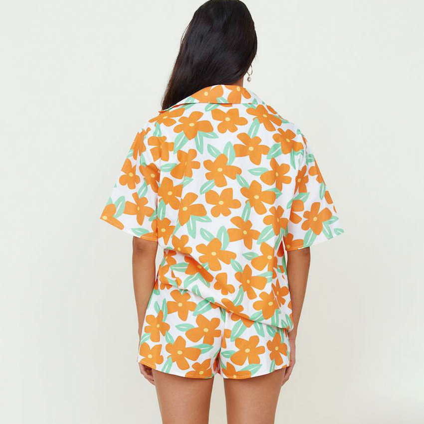2024新款时尚印花宽松外穿短袖短裤睡衣套装跨境家居服一POD定 制