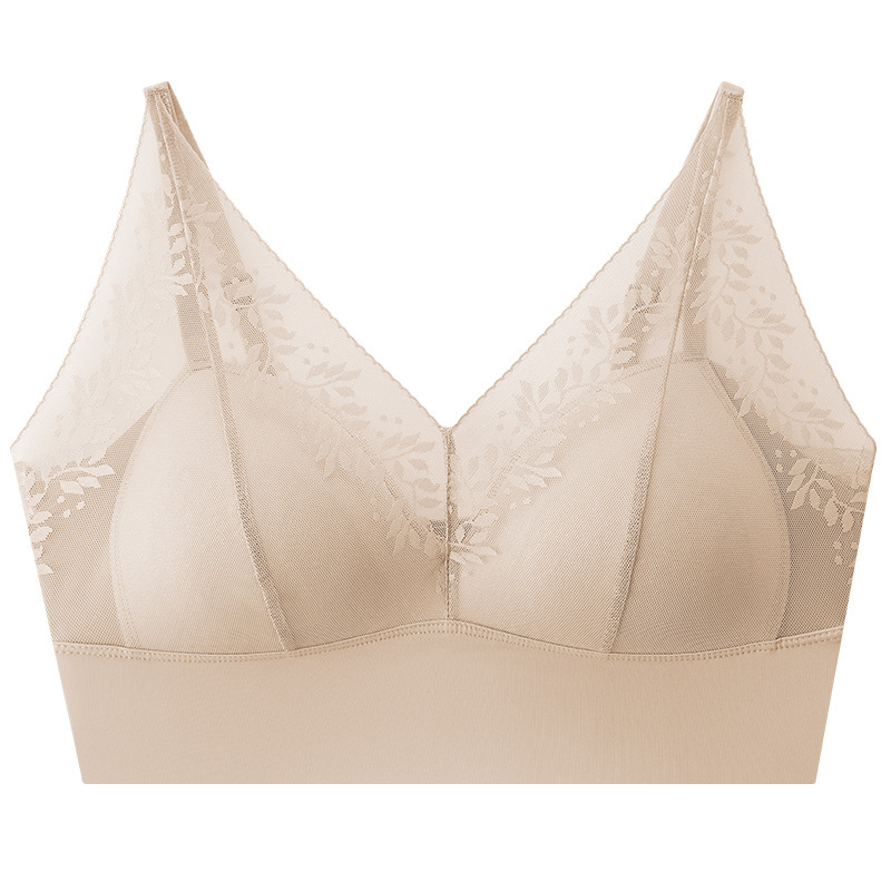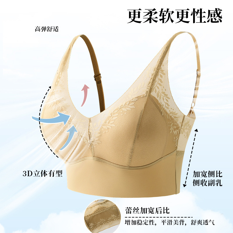 欧若风性感美背麦穗蕾丝桑免穿文胸内衣浅黄无钢圈聚拢透气内衣