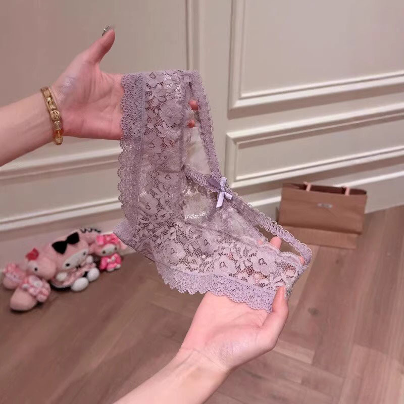 温情布蕾*紫色法式纯欲性感蕾丝边内裤女交叉镂空低腰三角裤情调