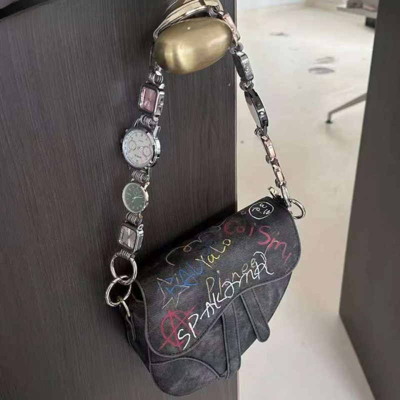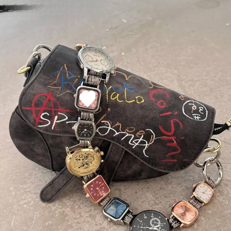 怪里怪气甜酷手绘涂鸦鬼马重工设计斜挎包马鞍包单肩手提