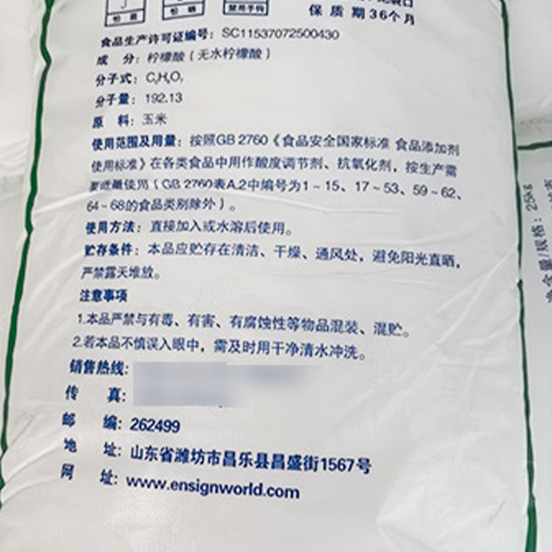 新款无水柠檬酸 食品级酸度调节剂无水柠檬酸钠酸味剂厂家批发