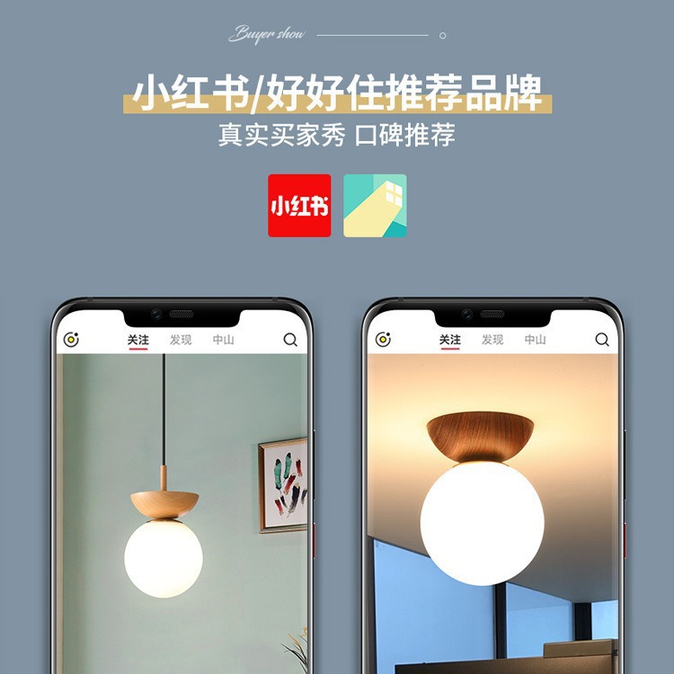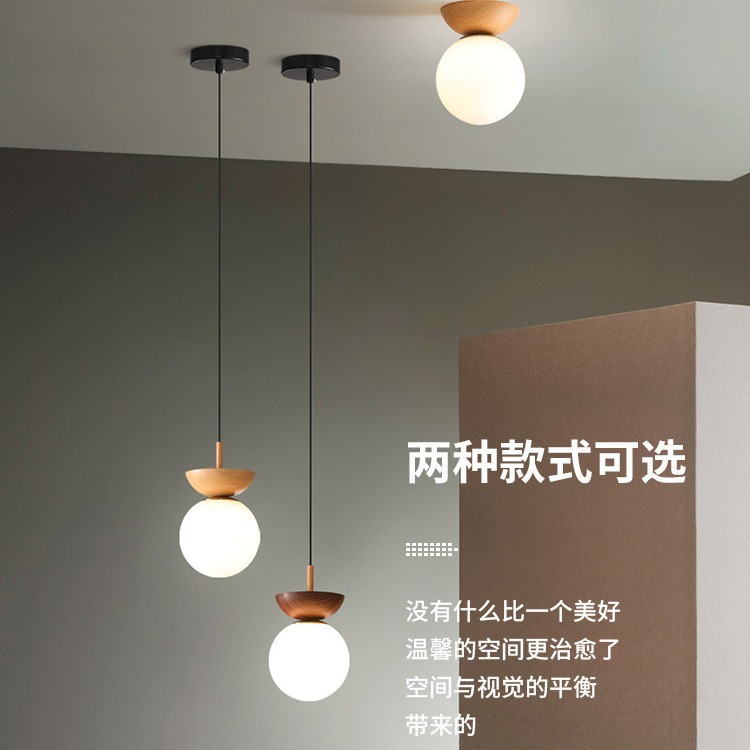 日式入户玄关灯原木风走廊灯过道灯北欧阳台吸顶灯圆球进门门口灯