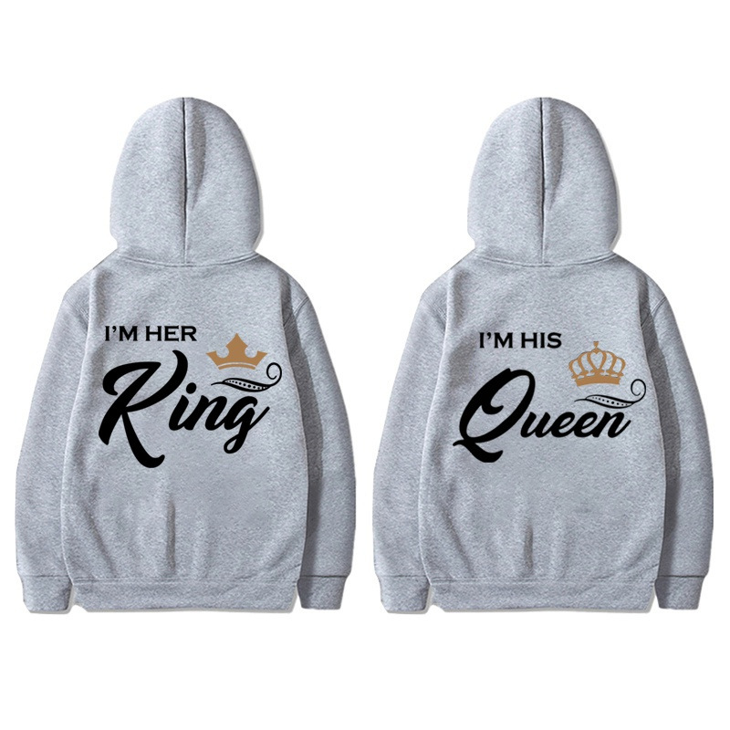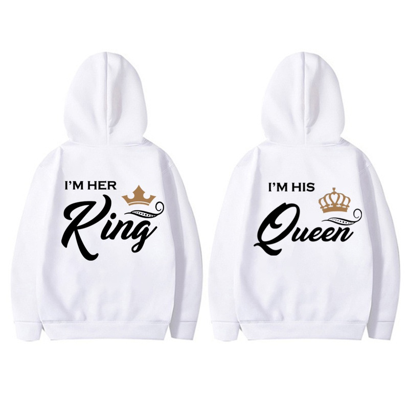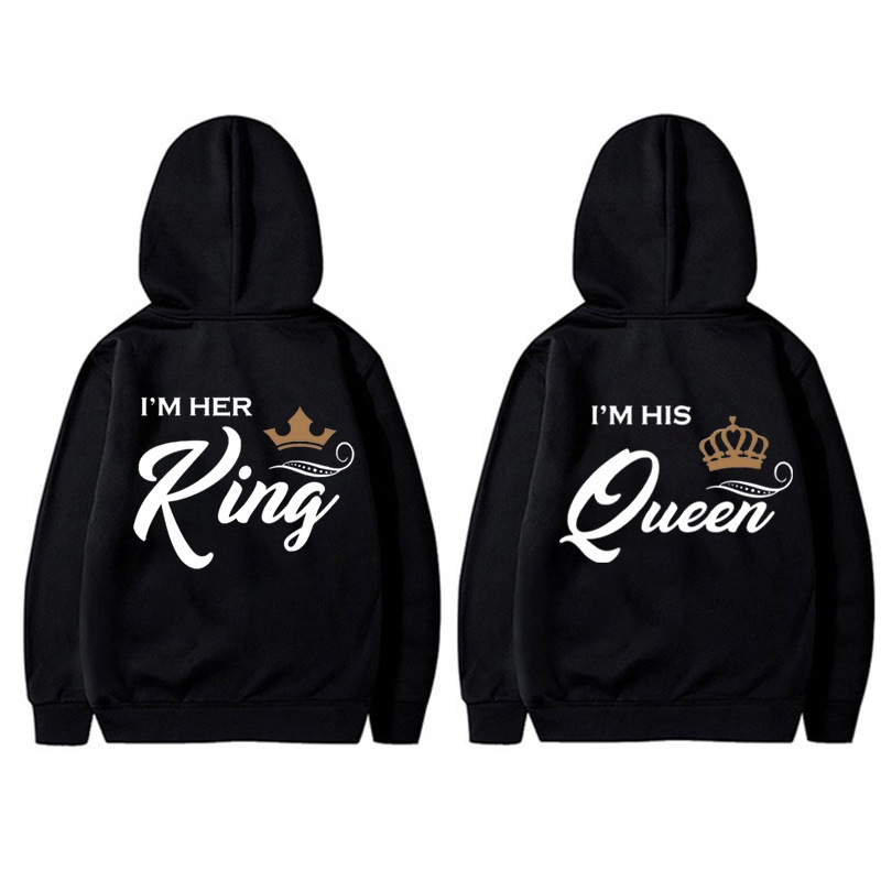 时尚国王和女王连帽衫长袖套头衫卫衣情侣装街头服装情人节跨境