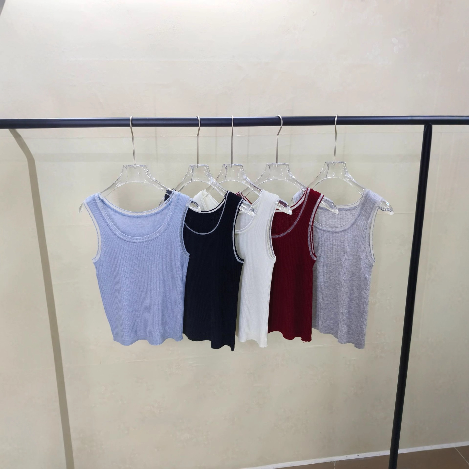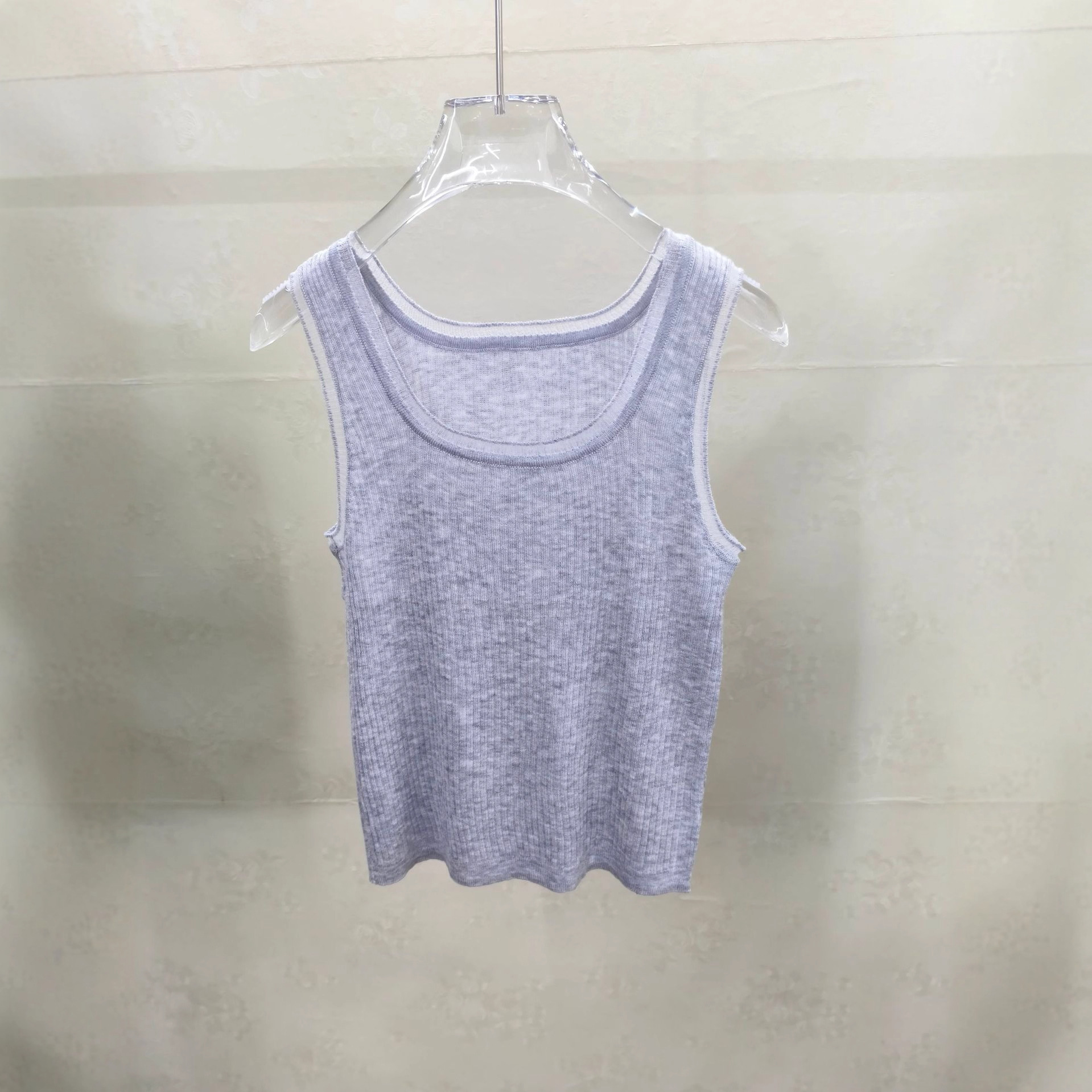 夏季新品套头无袖T恤小圆领羊毛拼接欧根纱针织衫舒适百搭